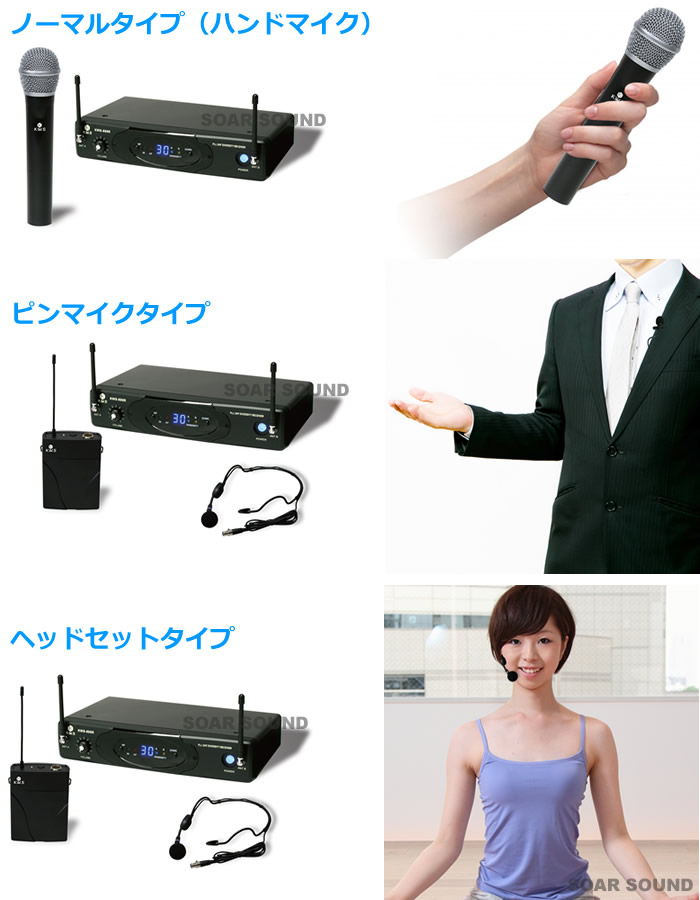 【ハンドマイクタイプセット】 カラオケ、バンドボーカル、プレゼンテーション、講義、司会用マイクなどに便利に手軽に御使用いただけます。